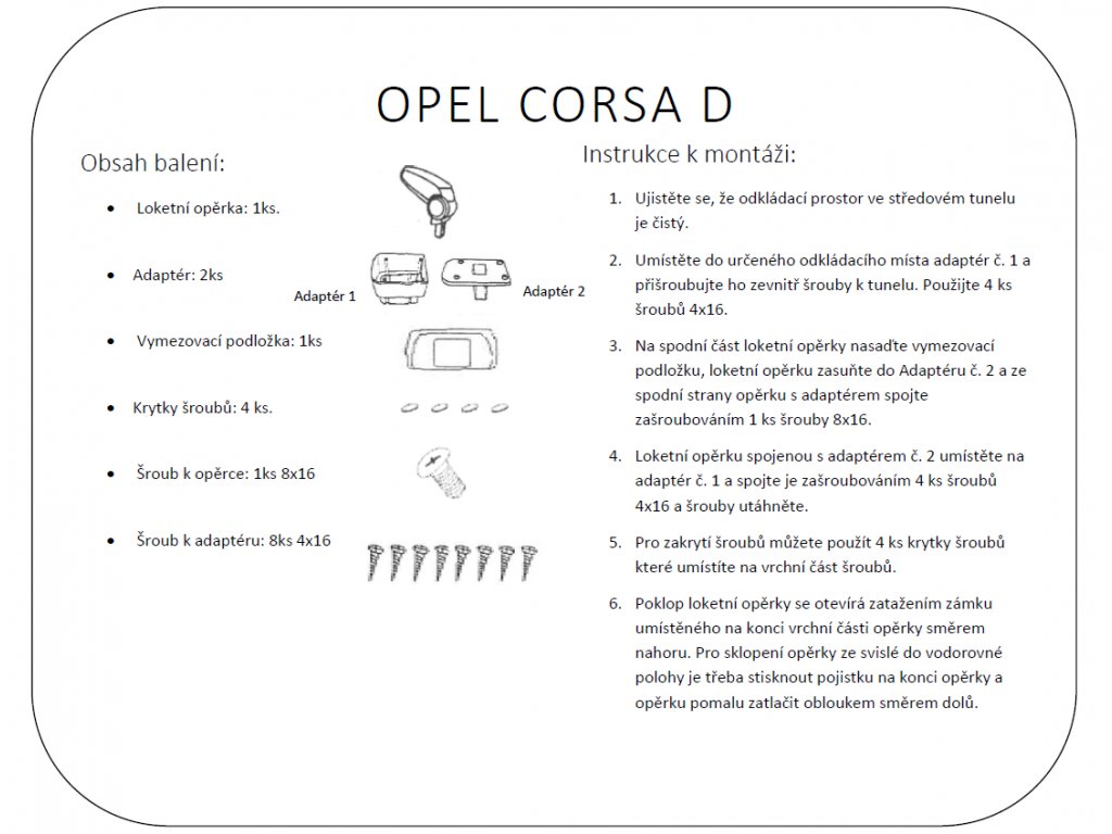 Loketní opěrka vyrobena originál pro Opel CORSA model D v 3 a 5 dveřní verzí v letech výroby 2006 až 2014.
