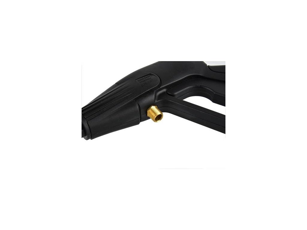 Pistole s přívodem pro vysokotlaký čistič s kovovou přípojkou, vybavená nastavitelnou šířkou proudu. Díky typickému závitu (12 mm) se pistole prakticky hodí na všechny tlakové podložky dostupné na trhu.