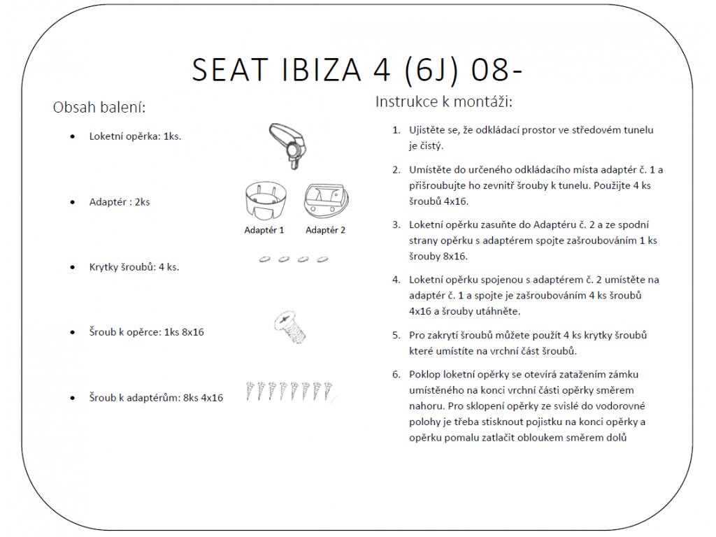Loketní opěrka vyrobená přesně pro Seat IBIZA 4. generace model 6J vyráběný v letech 2008-2017.