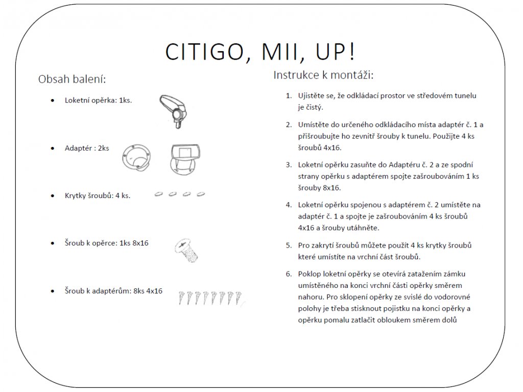 Lakťová opierka vyrobená originál pre VW UP vyrábaný od roku 2011.